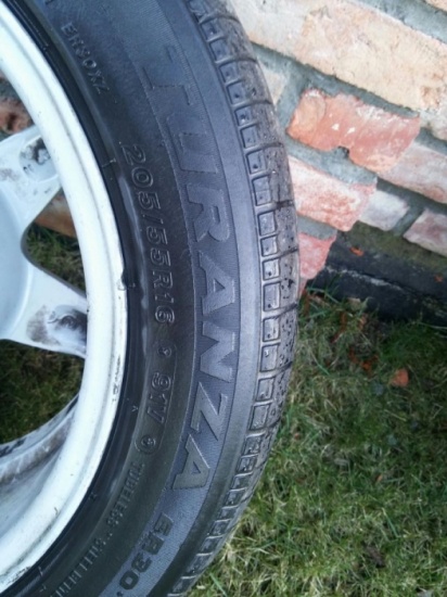 Na felgach są założone opony 205/55/R16 letnie bieżnik ok 4mm. Cztery takie same opony Bridgestone TURANZA ER30 indeks 91V.