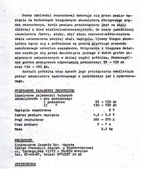 Próbnik zdolności rozruchowej akumulatorów samochodowych 6V