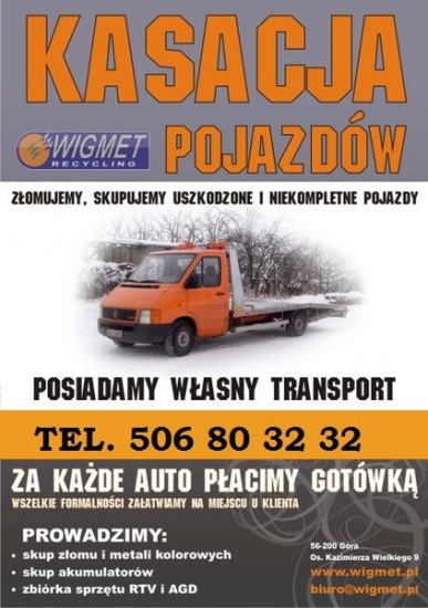 * Przyjmujemy do kasacji wszystkie typy pojazdów.