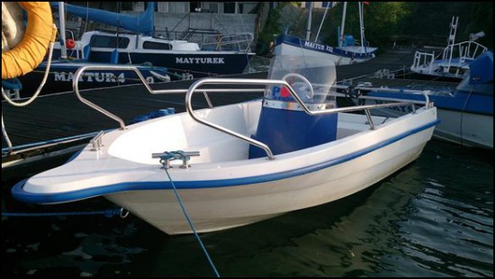 Gotowa do pływania, niezatapialna, wymiary łodzi 4,0m x 1,5m, waga 100kg.