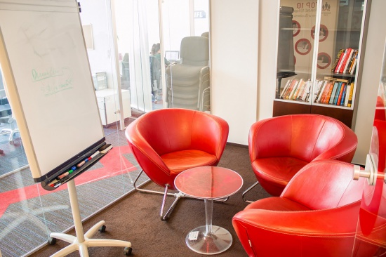 Chcesz zapewnić pozytywną atmosferę spotkania ? Cztery krzesła oraz "fruwające" książki na ścianie sprawiają, że jest to idealne miejsce na nieformalne spotkanie.