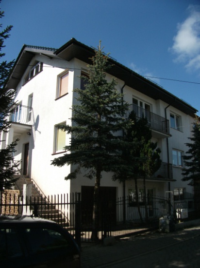 Dom: rozbudowana połówka bliźniaka po remoncie kapitalnym w 2009r., powierzchnia użytkowa 311,80 m², trzy kondygnacje + poddasze. Instalacje: elektryczna, wod.-kan., gazowa, c.o., c.w., telefoniczna, antena satelitarna, ogrzewanie centralne na gaz miejski – nowy ekonomiczny piec dwufunkcyjny Junkers. Ściany zewnętrzne 3-warstwowe (cegła) ocieplone styropianem, tynki, dach nowy – niemiecka dachówka ceramiczna glazurowana w kolorze zielonym, okna PCV, okna dachowe Velux, 6 balkonów i 2 tarasy. Na posadzkach parkiet dębowy + terakota, na ścianach gładzie. Świetnie zrobione łazienki i kuchnie (sprzęt, meble), standard nowego domu. Można wydzielić 3 niezależnie opomiarowane mieszkania. Budynek jest starannie wykończony, w świetnym stanie technicznym, ciepły i tani w utrzymaniu (przy temp. w pokojach 24-25ºC opłaty za gaz nie przekraczały w zimie 1 tys. zł za miesiąc za całość! - rachunki są do wglądu) .