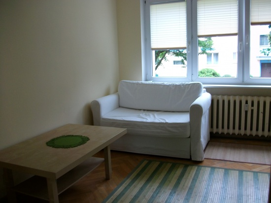 Mam do wynajęcia przytulną kawalerkę po generalnym remoncie. Składa się ona z przestronnego pokoju, kuchni, łazienki i przedpokoju. W pokoju znajdują się rozkładana kanapa, stolik i dwie bardzo pojemne lustrzana szafy typu PAX. Kuchnia jest umeblowana: lodówka, kuchenka, piekarnik. W przedpokoju stoi także szafa typu PAX. W łazience jest: wanna, umywalka i pralka. Mieszkanie przestronne i jasne. Znajduje się na parterze, należy do niego piwnica.