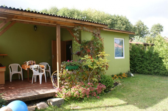 Ponad to za domem nowo postawiony domek gospodarczy na narzędzia.