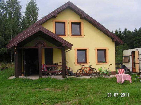 Sprzedam lub zamienię nowy domek używany jako letniskowy na porównywalny w woj. łódzkim lub mazowieckim blisko rzeki lub jeziora i lasu. Góra domu to 2 pokoje i WC z umywalką na dole łazienka, kuchnia, salon z kominkiem. Dom jest ocieplony i ogrzewany kominkiem. Obok domu nowy garaż blaszak. Kanalizacja miejska. Najbliższe miasto Gołdap z jeziorem Gołdap.