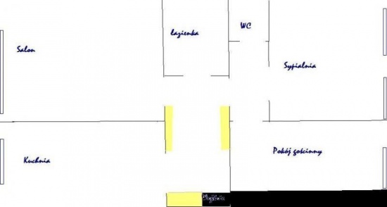 Wszystkie drzwi w mieszkaniu drewniane. Okna drewniane skrzynkowe w bardzo dobrym stanie. Podłogi: w salonie deska sosnowa, w większej sypialni drewniane panele, w mniejszej sypialni panele, w kuchni, łazience i wc terakota. W przedpokoju, łazience i wc oświetlenie sufitowe (podwieszane sufity). Kuchnia w zabudowie, kuchenka i piekarnik elektryczny.Łazienka wyposażona w wannę, kabinę prysznicową i umywalkę.W przedpokoju trzy duże szafy wnękowe. W salonie możliwość postawienia kominka.