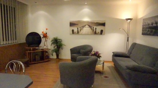 - Pokój dzienny zrozkładana 2 osobowa sofa do spania * 135x190*, stolik, foteliki, TV, combi zestaw muzyczny.