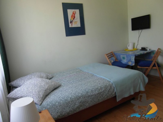 Planujesz krótki pobyt nad polskim morzem, wyjazd z rodzina, znajomymi, przyjaciółmi z pracy, urlop, wczasy? Pensjonat Villa Banita w Ustce posiadający tanie noclegi na pewno ułatwi Tobie podjęcie decyzji. Pensjonat posiada zróżnicowane cenowo pokoje 2 i 3 osobowe, dwa apartamenty, oraz samodzielny domek turystyczny. Wszystkie pokoje, apartamenty i domek w pensjonacie Villa Banita w Ustce posiadają prywatne łazienki, telewizory , czajniki bezprzewodowe, radia. Na terenie pensjonatu jest dostępny bezpłatny internet WiFi, znajduje się plac zabaw dla dzieci, oraz miejsce biesiadne z grillem betonowym, drewnianymi lawami i stołem. Na posesji, jak i przy niej jest bezpłatny parking. Pokoje w pensjonacie otacza piękny brzozowy zagajnik, natomiast do morza wiedzie droga przez las sosnowy i łąki borowinowe, którą pokonuje się w 12 minut. Pensjonat Villa Banita udostępniający tanie pokoje w Ustce, to dobry wybór. Dla stałych klientów są przewidziane dodatkowe rabaty. Serdecznie zapraszamy na pokoje w Ustce. Więcej informacji o pokojach w Ustce, w pensjonacie Villa Banita można znaleźć na naszej stronie internetowej: http://ustka.jimdo.com/