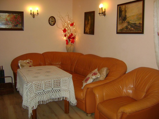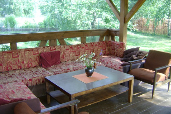 Na tarasie osłoniętym od deszczu i wiatru duuuży, wygodny narożnik, obszerna ława, ratanowe fotele. Działka 10- arowa, ogrodzona, miejsce na ognisko, grill, trampolina ogrodowa czyli skakanko, kosz do gry w kosza, leżaki, dla dzieci huśtawki, piaskownica, w garażu rowery. Dla wędkarzy specjalna oferta- łódź wędkarska. Ale przede wszystkim fantastyczne miejsce- cisza, spokój, bliskość lasu i jeziora.