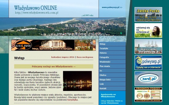 Władysławowo ONLINE to powstała w 1997 roku nieoficjalna strona miasta zawierająca wiele ciekawych informacji, zdjęcia o każdej porze roku, aktualna baza noclegowa w tym hotele, pensjonaty, pokoje gościnne i campingi. Ilustrowana historia miasta, aktualności i opis okolicy. Strona zawiera również interaktywną panoramę miasta, opis atrakcji turystycznych, spis ulic i plan miasta. Zachęcamy do odwiedzenia tego nadmorskiego kurortu położonego u nasady Półwyspu Helskiego. - http://wladyslawowo.wla.com.pl