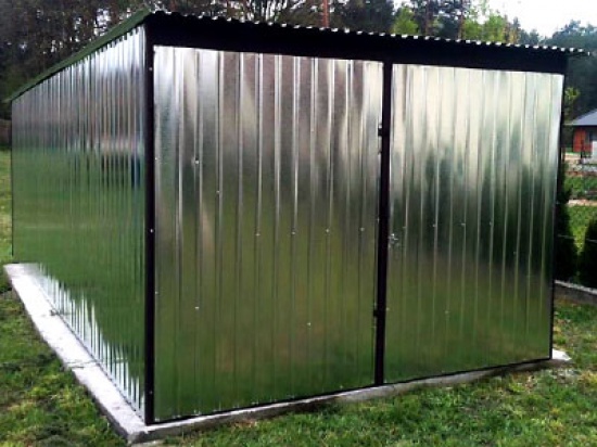 Przedmiotem sprzedaży jest garaż 3 x 5 z poszyciem z blachy ocynkowej.
