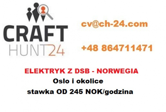 - e-mail: (skorzystaj z formularza) (w tytule prosimy wpisać "ELEKTRYK - NORWEGIA")
