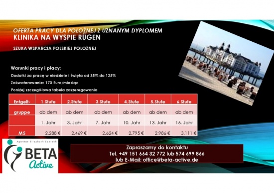 Klinika na wyspie Rügen poszukuje wsparcia położnej z uznanym dyplomem.