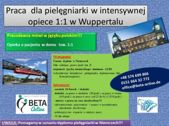 Praca dla pielęgniarki w intensywnej opiece 1:1 w Wuppertalu