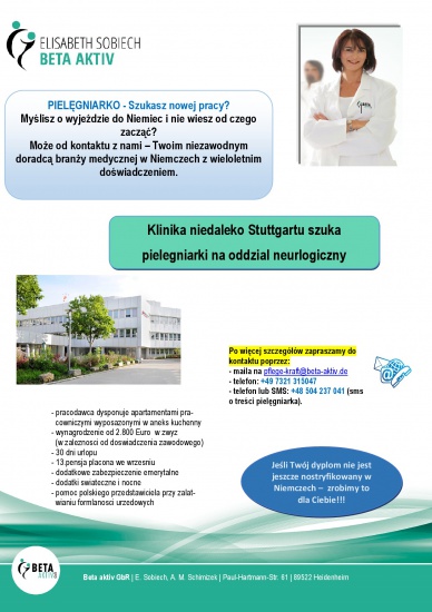 Klinika niedaleko Stuttgartu szuka pielęgniarki na oddział neurologiczny