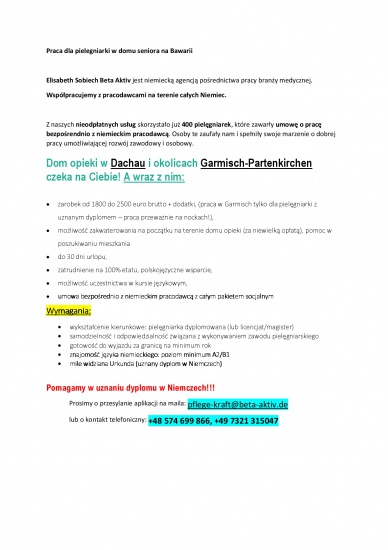 - zarobek dla pielęgniarki z uznanym dyplomem do 2.300 Euro netto