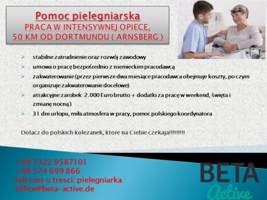 Pomoc Pielęgniarska – praca w intensywnej opiece – 50 km od Dortmundu ( Arnsberg )