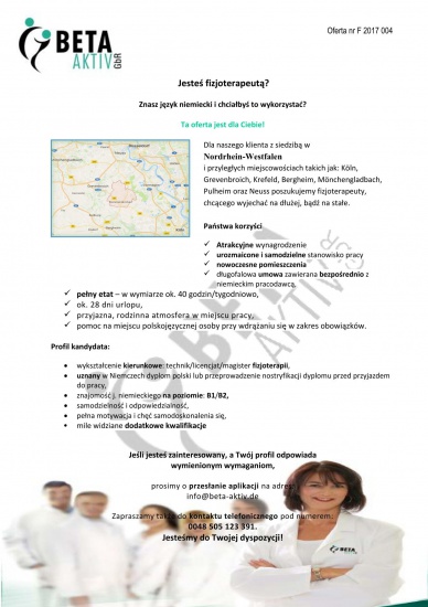 Więcej naszych ofert na : http://beta-polnisch.pflegefachkraft-polen.de/category/oferty-pracy-fizjoterapia/