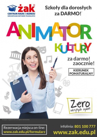 Szkoła ŻAK prowadzi nabór do pomaturalnej szkoły artystycznej! Zostań animatorem kultury! Rekrutacja trwa! O przyjęciu decyduje kolejność zgłoszeń!