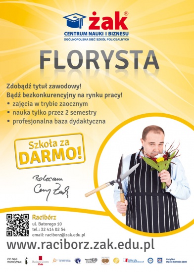 Florysta w ŻAKU - nauka ZA DARMO! Szkoła zapewnia materiały niezbędne do nauki (kwiaty żywe, sztuczne i pozostałe materiały)!