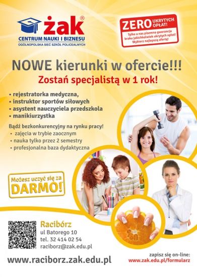 Uwaga, uwaga! Szkoła ŻAK otwiera nową rekrutację! Zapraszamy do zapisu do szkoły już od 23 kwietnia! W ofercie szkoły policealne (nie wymagamy matury) i liceum dla dorosłych! Nauka w systemie zaocznym!