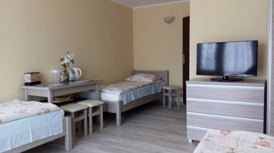 - Dwa pokoje dzienne ( łoże małżeńskie ( szer. 220 cm)+ dwa łóżka drewniane (szer.0,80 cm)- pojedyncze, komody, szafy, dwa tv 32' z płaskimi ekranami)