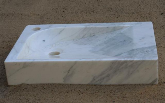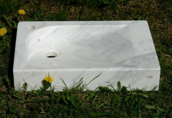 Umywalka jest wycięta z bloku prawdziwego, litego kamienia naturalnego - prawdziwego marmuru Carrara.
