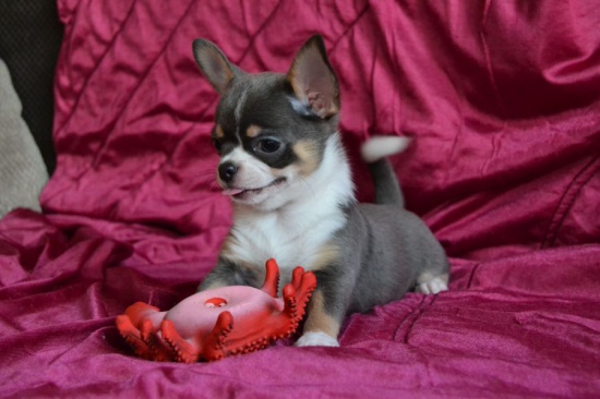 Szczeniak umie chodzić na smyczy załatwiac sie na dworze i jeśc sucha karme jak i domowe jedzenie.