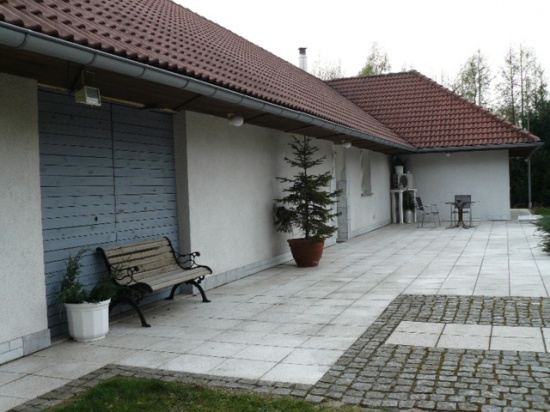 Rok budowy-2000.Parterowy,bez piwnic,poddasze nieużytkowe,zbudowany na płycie fundamentowej,możliwość nadbudowy 2 kondygnacji .Pokój dzienny z kuchnia,3 sypialnie,jedna łazienka,pomieszczenie gospodarcze.Przyjazny dla osób na wózku,wszystkie pomieszczenia i taras na jednym poziomie. Ogrzewanie podłogowe kominkiem/drewno/z płaszczem wodnym,zapas suchego drewna na 3-4lata. Woda,prąd 3-faz.,2-taryfowy,oczyszczalnia ścieków.Działka 2 ha lub więcej do 28 ha. za dopłatą.Garaż murowany 35