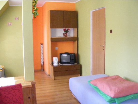 telewizji kablowej. W każdym z pokoi jest dostęp do sygnału internetowego (sieć bezprzewodowa). Na zewnątrz znajdują się dwa stoliki z ławkami i parasolami oraz kuchenka gazowa i wędzarnia. Duży, ogrodzony trawnik, ze starannie utrzymaną trawą , wykorzystywany jest jako miejsce do rekreacji i parking samochodowy.