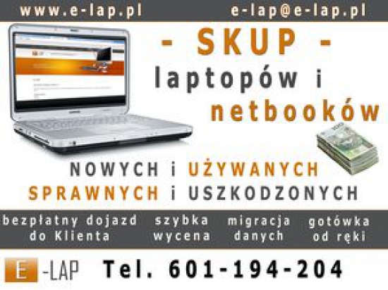 Czujesz bezradność w stosunku do swojego laptopa ? A kiedyś był z niego taki fajny sprzęt? Skupujemy sprzęty nowe, używane, nawet uszkodzone. Dzwoń, wejdź na www i poddaj go wstępnej wycenie. Przyjedziemy na terenie Wałbrzycha, Świdnicy, Świebodzic i okolicy, kupimy go od Ciebie płacąc gotówką. Sprawdź jakie to proste, sprzedajesz nie ruszając się z domu. Komputery, LAPTOPY , Podzespoły - kupujemy wszystkie marki.