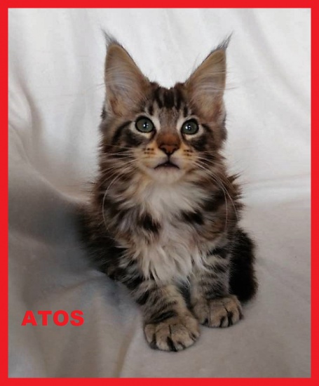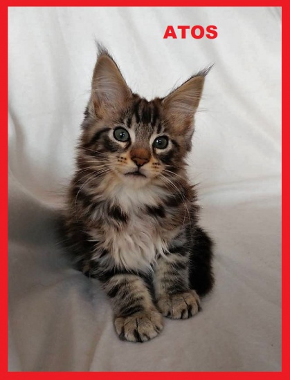Atos Rysi Pazur(HCM N/N) ur. 07-07-2017,jest piękym , czarnym klasycznie pręgowanym kocurkiem. Jest łagodnym, lubiącym się przytulać kociakiem. Spośród rodzeństwa wyróżnia się powagą i cudownym mruczeniem. Kocurek jest już wykastrowany i gotowy do zamieszkania w nowym domku. Jest nauczony czystości i umie korzystać z drapaka , więc meble są bezpieczne. Posiada rodowód, szczepienia, jest odrobaczony a do nowego domu dostanie wyprawkę. Nasza hodowla nazywa się Rysi Pazur i jest zarejestrowana w CCAMBER pod patronatem FPL.