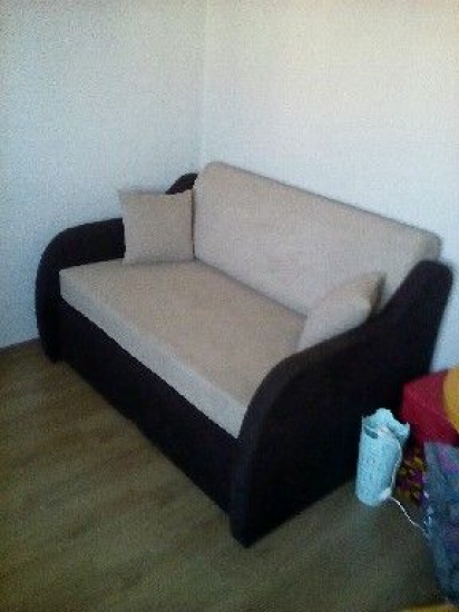 Sprzedam mało używaną sofę. Bardzo poręczna, nie zajmuje wiele miejsca, spanie i miejsce do siedzenia dla 2 osób. Sofa jest dwukolorowa - jasny beż i ciemny brąz (oparcia).