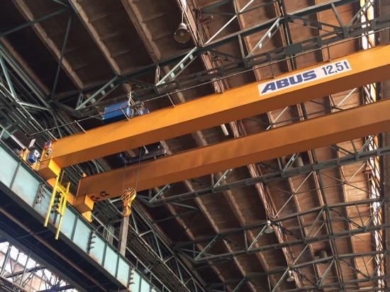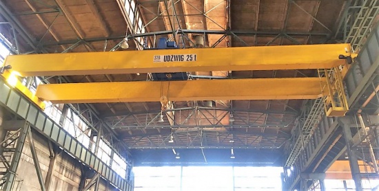 Suwnica dwudźwigarowa natorowa z napędem elektrycznym.