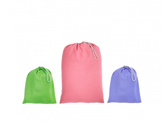 Można prać w pralce, nie gniecie się, posiada sznurek do związywania.