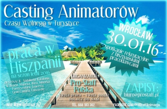 Rozmowy kwalifikacyjne odbędą się podczas ogólnopolskiego Castingu Animatorów 27.02.2016 we Wrocławiu.