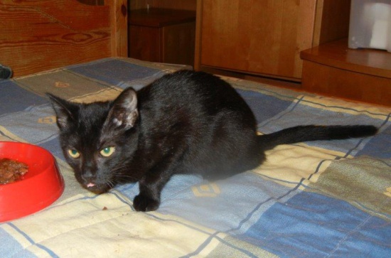 CZARNA EWELINKA  -  nagle pojawiła się na posterunku policji. Czarna, czujna i tajemnicza, jak policyjny agent. W domu tymczasowym, dyskretnie przemyka pod ścianami, uważnie obserwuje  -  a na kolanach odpręża się i pięknie mruczy. Nie boi się kotów, nie boi się psów  -  obserwuje je uważnie, nabiera zaufania, zaprzyjaźnia się. Może chcesz zyskać względy tajemniczej czarnej piękności? Urodziła się w końcu maja 2014, jest odrobaczona, zaszczepiona i wysterylizowana, ma książeczkę zdrowia.