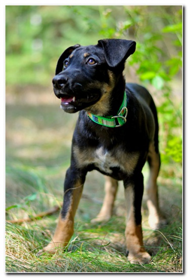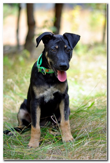 Fido to ok. 3 mies. szczeniak. Docelowo będzie raczej średnio-większym pieskiem. W tej chwili waży ok. 7 kg. Fido jak każdy psiak w jego wieku jest śmiały, odważny, rezolutny i ciekawy świata. Jak na swój wiek bardzo rozgarnięty, nie jest typem małego nieporadnego szczeniaka. W kontaktach z człowiekiem nie ma żadnych zahamowań, przyjaźnie nastawiony do całego świata, ufny. Jest bardzo wesoły i żywiołowy. Również psy nie są dla niego żadnym problemem, inicjuje kontakty, ładnie dogaduje się i zachęca do zabawy. To kochany przytulak i pieszczoch.