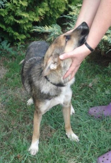 Ta psinka nie miała dzieciństwa, właściwie nie miała domu. Błąkała się po wsi, ktoś nakarmił, ktoś pogonił. Trafiła do nas, do domu tymczasowego, bardzo zaniedbana i wyniszczona. Ale okazało się, ze to bardzo radosny i wesoły szczeniak, bo Greyka ma dopiero rok. Teraz dopiero poznaje, co to zabawki, gonitwy po ogrodzie, swoje posłanko i swój człowiek. Zawzięcie broni tej swojej małej ojczyzny, obszczekuje przechodzących drogą i zadowolona wraca do domu. Jest ciągle uśmiechnięta, roześmiana, taka pogodna psinka. Jeszcze się trochę boi krzyku, hałasu, na wołanie podchodzi na ugiętych łapkach. Greya jest już po sterylizacji i szczepieniach. Waży 12 kg, sięga przed kolano, jest drobna i szczupła. Lubi inne psy i koty, lubi zabawy z dziećmi. Szukamy dla niej domu z ogródkiem, gdzie by mogła strzec swojego człowieka i siedliska.