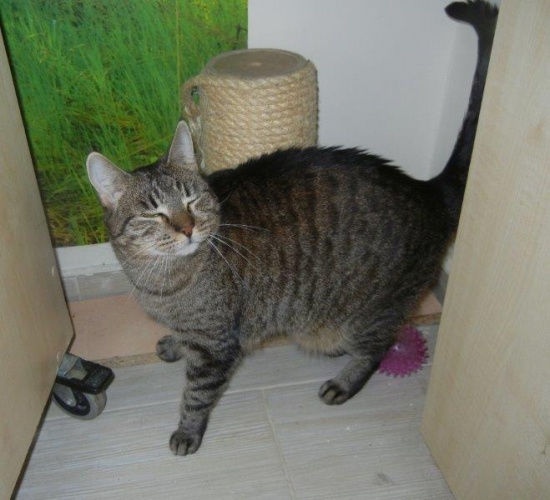 Ryśka - uśmiechnięty kocu Budda. Szczęśliwa, pogodna, troszkę okrąglutka, spokojna. Na pewno przyniesie dużo radości. Nie będzie natrętnie domagać się pieszczot, po prostu grzecznie na nie poczeka dyskretnie towarzysząc Ci przy każdej czynności. Pomruczy Ci wieczorem kołysankę, nie zepchnie Cię z poduszki, uśnie na swoim posłanku. Nie pokłóci się z Twoim dzieckiem, kotem ani psem - towarzyska i zrównoważona z każdym znajdzie wspólny język.Po prostu kot idealny. Urodziła się koło sierpnia 2010 roku, jest wysterylizowana i zaszczepiona. (skorzystaj z formularza) 509 729 642 lub 886 910 497 http://fundacjakotobokpsa.pl