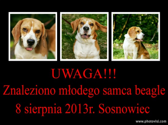znaleziono młodego, ok. 1, 5 rocznego samca beagle tricolor.