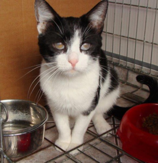 pełną miseczkę i ochronę przed innymi zwierzakami - pamięta złe czasy, krzyczy ze strachu i na ślepo broni się przed kotami przednimi łapkami. W domu radzi sobie doskonale, zawsze trafia do