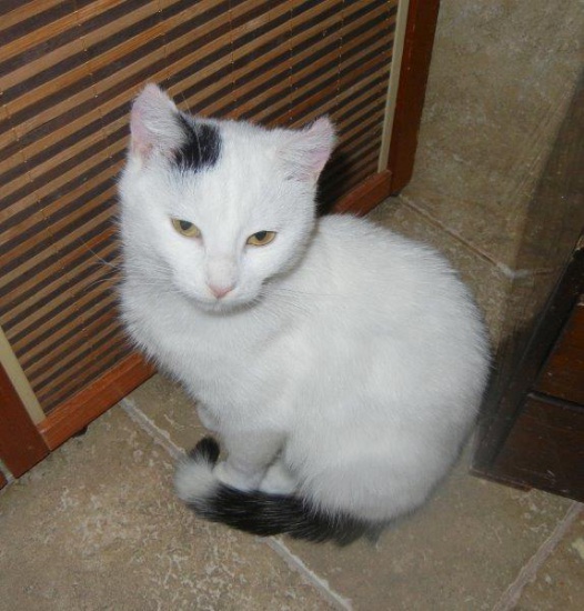 Delikatna Bianca - taka zwykła wiejska kotka. Sama jeszcze dziecko, a już urodziła maluszki, ale nie pozwolono jej ich odchować… Przychodziła do letników, w końcu całkiem zamieszkała na działce. Ale idzie zima, sama zostać tam nie może, To drobniutka delikatna i spokojna koteczka, szczęśliwa i wdzięczna za pełną miseczkę i ciepły kącik. Lubi być głaskana, lubi być blisko człowieka, towarzyszy cichutko i dyskretnie. Może masz odrobinkę miejsca dla niej? Urodziła się wiosną 2014, jest wysterylizowana, zaszczepiona i odrobaczona, ma książeczkę zdrowia.