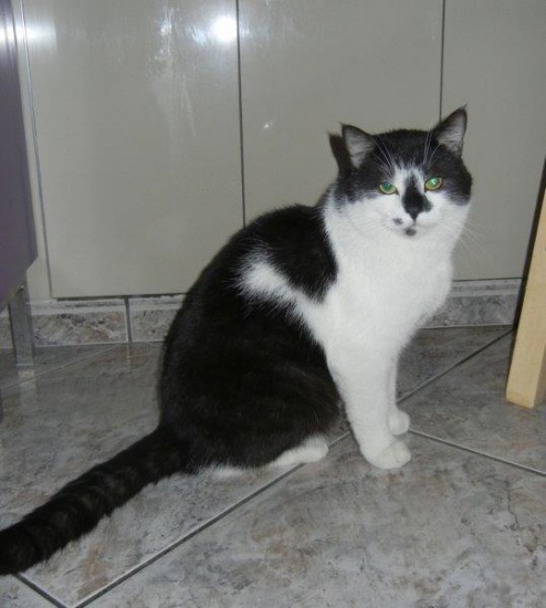 domu. Dyzma jest piękny - wielki, z oczami jak szmaragdy. Trochę chudy po poniewierce, ale futro ma już czyściutkie i miękkie. Dobrze wychowany i łagodny, dogaduje się z psami i kotami, chętnie mruczy na
