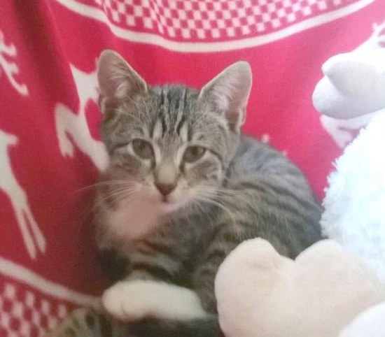 Energiczny Tobiasz - pręgowany elegant w białych pończoszkach. Podrzucony na działki, miał tam opiekę - niestety trzeba wracać z wakacji, a kotek nie może zostać ani sam na działach, ani przyjechać do miasta do domu - bo alergiczne dziecko….To szalony koci rozrabiaka - bardzo energiczny, uroczy, lgnący do ludzi. Całkowicie zżyty z człowiekiem. Dobrze czuje się w ogródku, świetnie na kanapie w pokoju - - ważne by w pobliży był człowiek do przytulenia. Urodził się w końcu lipca 2014, jest odrobaczony i zaszczepiony, ma książeczkę zdrowia.