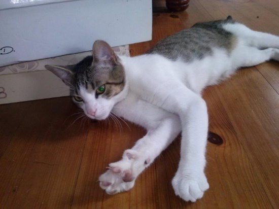 Farciarz - potrącony przez jeden samochód, przed rozjechaniem przez kolejny ocaliła go dziewczyna, która zatrzymała ruch i zabrała nieprzytomnego. Połamana miednica już się zrosła, i zdrowy rozbawiony kotek czeka na kolejny fart - na kochający dobry dom. Kotek kocha cały świat, z wszystkimi chciałby się bawić i przytulać. Farciarz urodził się późną jesienią 2013, jest wykastrowany, zaszczepiony i odrobaczony, ma książeczkę zdrowia.