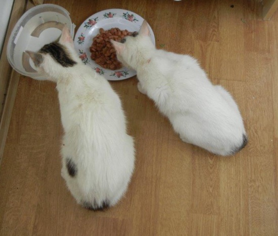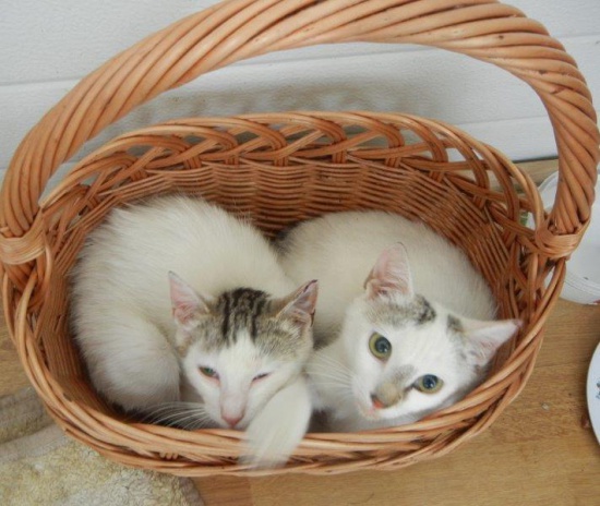 Igiełka z Niteczką - prawie białe, prawie identyczne i prawie nierozłączne. Urodziły się w ruinach, karmiły je panie ze szwalni. I te panie chciałyby dla pięknotek lepszego życia niż miseczki pod oknem i poniewierka. Śliczne białe siostrzyczki zdecydowanie lepiej pasują do przytulnego mieszkania niż do zimnych i brudnych komórek. Panienki są łagodne i delikatne, lubią inne koty, lubią psy. Bardzo proszą o dobry domek - może wspólny? Bo chętnie zostałyby razem….Urodziły się na początku 2015, są wysterylizowane, zaszczepione i odrobaczone, mają książeczki zdrowia. (skorzystaj z formularza) 600 985 675 http://domowepiwniczneszukaja.blogspot.com/