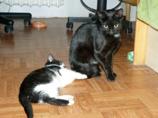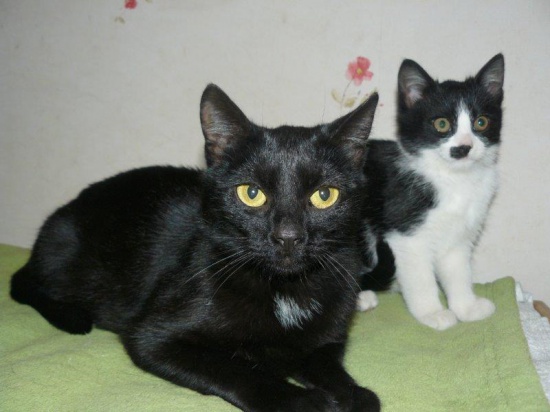 Kiara i Mela - młoda, zaledwie roczna, drobna, czarna koteczka o wielkich oczkach wraz z 3-miesięczną córeczką, puchatą kuleczką, szukają wspaniałego i bezpiecznego domu, pełnego miłości. Obie kotki wiele przeszły, mieszkały na tyłach stacji benzynowej przy Al. Mickiewicza, ruchliwa ulica, ale ludzie przychodzili regularnie, karmili, postawili ciepły styropianowy domek, głaskali. Zagrożenie nadchodziło nocą, to nocą koteczka traciła po kolei swoje dzieci, nocą przychodziły lisy i zabijały... Po zgłoszenie o tej sytuacji poszliśmy tam wraz z małżeństwem karmiacym koteczki. Przy nas przyszły dwa lisy, odganialiśmy je, ale nie reagowały, rzucaliśmy w nie kocimi miskami, bo tylko to było pod ręką... W ostatniej chwili chwyciłam 3 miesięczną kociczkę i wsadziłam do plecaka, mama uciekła do pudełka. Dziś kotka i córeczka są bezpieczne, mama Kiara jest już wysterylizowana. Obie kotki są kochane i powoli zapominają o strasznych przeżyciach. Kiara urodziła się lipcu 2012, Mela w sierpniu 2013, są zaszczepione i odrobaczone, mają książeczki zdrowia. (skorzystaj z formularza) 604 395 142, 600 988 890 http://domowepiwniczne.blogspot.com/