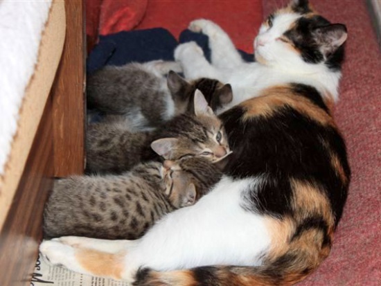 Kocia rodzinka - piękna tri kolorka przyjechała z właścicielami na lato działki, ale „zapomniano” ją zabrać... Sezon się kończy, działki pustoszeją, a koteczce z maluszkami coraz głodniej, zimno, coraz niebezpieczniej…. Bardzo pilnie szukamy domu dla niej i dla trójki ślicznych, maleńkich, jeszcze niebieskookich kociąt. Są przymilne i mruczące, zdrowe i rozbawione, ufne i kochane. Kociaki mają 5-6 tygodni, kotka ok.1,5 roku.