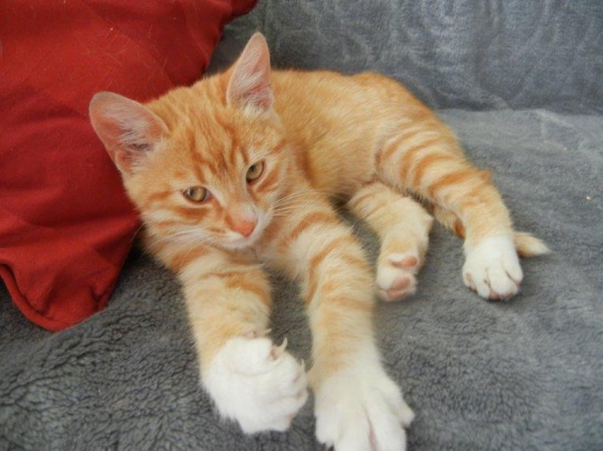 Rudy Boguś - mieszkałem z rodziną przy przydrożnym barze, dobrze tam było, karmili, głaskali. Ale dużo samochodów jeździło, i już ne ma mojego rodzeństwa… A ja tak nie chcę, więc szukam bezpiecznego domu - z dużą poduszka, bo będę wielkim kotem, już jestem bardzo duży, choć mam dopiero 4 miesiące. Taki pluszowy miś jestem, mięciutki i łagodny, lubię mizianie i przytulanki, , lubię podjeść, a potem się pobawić. Inne koty też lubię, i chyba w ogóle lubię cały świat. A kto mnie pokocha? Urodziłem się czerwcu 2014, jestem odrobaczony i zaszczepiony, mam książeczkę zdrowia.